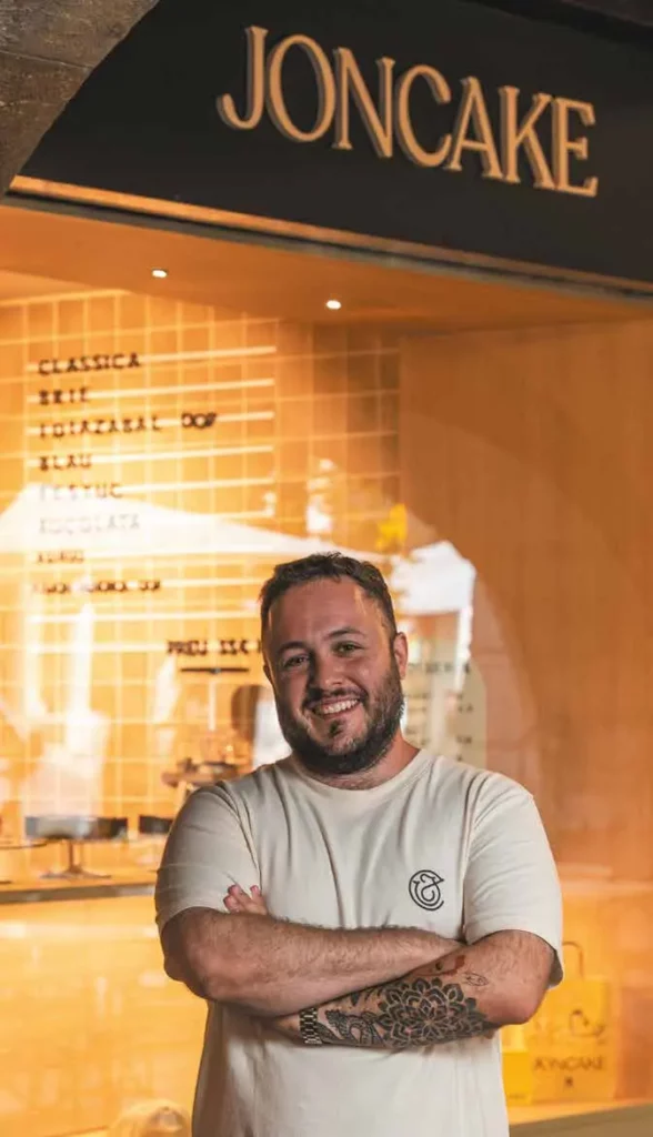 Jon García: JONCAKE va néixer gairebé per inspiració divina. Durant el període de la Covid, quan molta gent del sector —jo inclòs— ens vam quedar sense feina, vaig buscar una manera de crear alguna cosa diferent a partir dels grans cheesecakes que ja existien al nostre país. Tot va comen-çar com una recerca de la recepta perfecta, on el formatge fos el veritable protagonista. Les primeres creacions van marcar el camí: el clàssic, el de quatre formatges, el de formatge blau, Idiazábal, el de cabra… Fins i tot en tenim un de xocolata, per a aquells que no són amants del formatge!