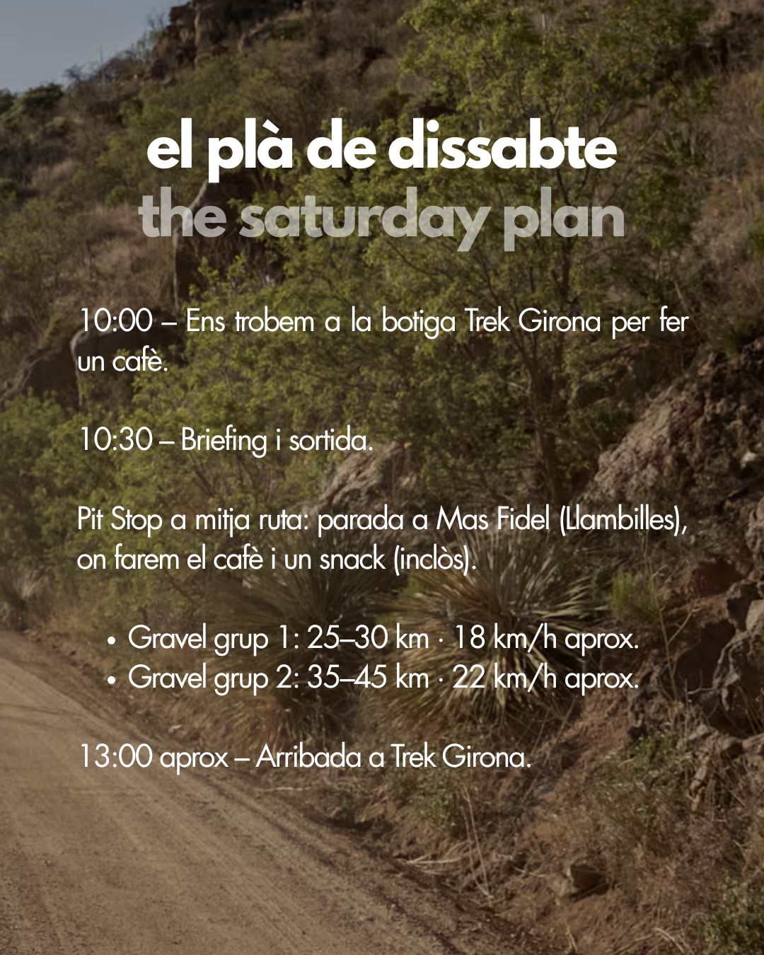 Plan: 90-minute gravel ride to Mas Fidel for coffee, then back to Trek.